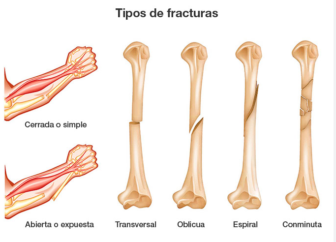 Una vez que nos hemos ubicado y sabemos de qué estamos hablando, pasamos a hablar de los 5 tipos de fractura que podemos sufrir más comúnmente (aunque hay más tipos de fractura), cada una de ellas con sus propias características y sus causas concretas: