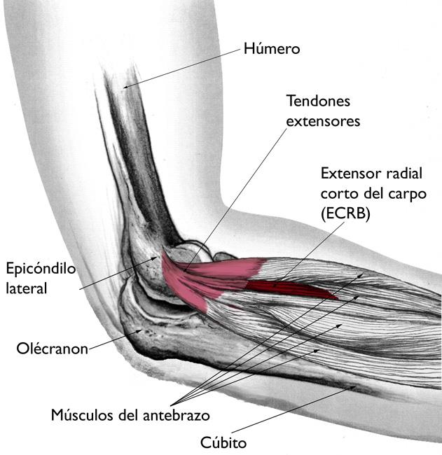 El síntoma principal es el dolor en la parte externa del codo (Epicóndilo), que puede extenderse hacia el antebrazo, llegando incluso a la muñeca, y también hacia el hombro. También se produce un aumento de la sensibilidad en la zona externa del codo y en el antebrazo.